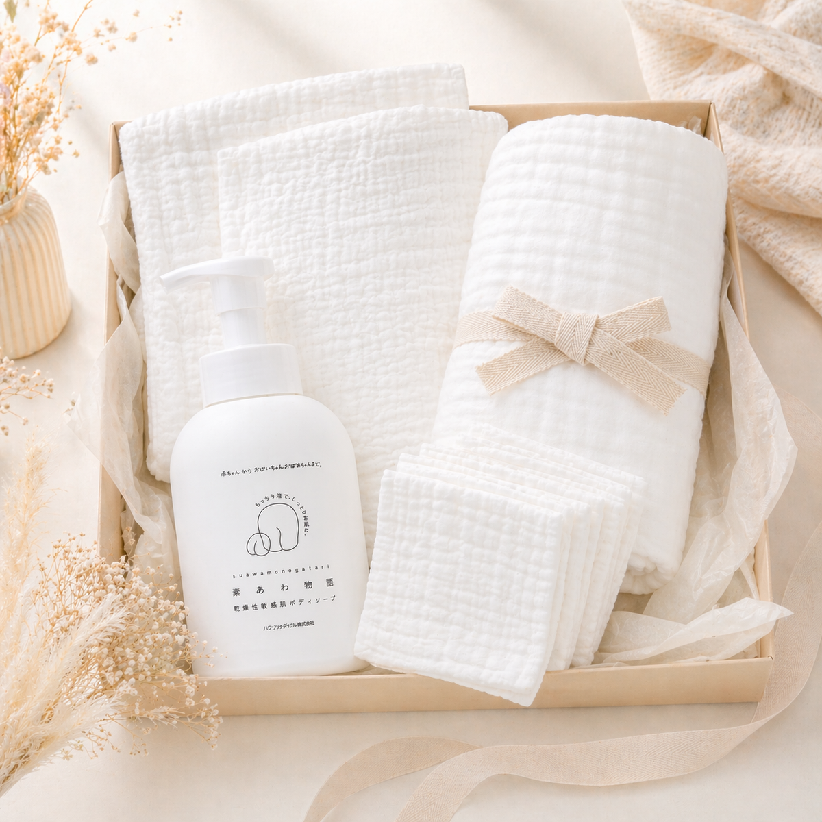 やさしいガーゼとボディソープの箱入りセット 箱入りで、そのまま贈れる ガーゼとボディソープのセットです 出産祝い・ご家庭用として、 用途に合わせてお選びいただけます やさしいガーゼと泡のボディソープ・素あわ物語のセット/箱入/Hakuzo Medical x Tanaka Gauze 贈り物に / 沐浴ガーゼ 沐浴布 ツイートする シェアする 販売価格: 4,930円(税込み) 会員価格 (税込み) 通常価格 (税込み) 在庫 商品コード 990369 JANコード 4573475930616 沐浴布(あかちゃんのおふろガーゼ)2枚・しかくいハンカチ3枚と素あわ物語|出産祝い・出産準備向け しかくいおくるみ1枚と素あわ物語|出産祝い・出産準備向け しかくいおくるみ2枚・沐浴布(あかちゃんのおふろガーゼ)2枚・しかくいハンカチ3枚と素あわ物語|出産祝い・出産準備向け おおきめフェイスタオル2枚と素あわ物語|毎日のタオル向け しかくいハンカチ8枚と素あわ物語|毎日のタオル向け おとなワイドバスタオル1枚と素あわ物語|家族のおふろ向け おとなワイドバスタオル2枚と素あわ物語|家族のおふろ向け こどもワイドバスタオル2枚と素あわ物語|家族のおふろ向け 数量 - + カートに入れる カテゴリー ガーゼセットは贈り物にも最適 メーカー タナカガーゼ ブランド ファースト・ラップ キャンペーン あかちゃんをしっかりくるむガーゼ| ガーゼハンカチ| 出産御祝| 0~2歳| 2~6歳| こども| おとな 便種 宅急便 RECOMMENDED ITEMS こんな商品も買われています おおきめガーゼケット/ 1枚/箱入 /ホワイト/Tanaka Gauze/やさしいガーゼ 贈り物に 4,620円(税込み) おとなバスタオル/2枚/箱入/ワイド・スリム/ホワイト/Tanaka Gauze/やさしいガーゼ 贈り物に 5,830円(税込み) おとなバスタオル/ワイド・スリム/ホワイト/袋入/Tanaka Gauze/やさしいガーゼ 4,873円(税込み) こどもバスタオル/ 2枚/箱入/Tanaka Gauze/やさしいガーゼ 贈り物に 4,840円(税込み) しかくいおくるみとハンカチのセット/ホワイト/箱入/Tanaka Gauze/やさしいガーゼ 贈り物に 7,480円(税込み) あかちゃんのおふろガーゼセット/贈り物に箱入/Tanaka Gauze/やさしいガーゼ 7,480円(税込み) 手さげ巾着バック入赤ちゃんのおふろにやさしいガーゼセット/Tanaka Gauze/やさしいガーゼ/ 贈り物に / 沐浴ガーゼ 沐浴布 9,760円(税込み) お得なファミリーバスタオルセット/Tanaka Gauze/やさしいガーゼ 贈り物に 12,546円(税込み) やさしいガーゼとボディソープのお得なセット 贈り物にもご家庭でも 8,980円(税込み) しかくいおくるみ/ホワイト/袋入/Tanaka Gauze/やさしいガーゼ 2,790円(税込み) おおきめガーゼケット/ホワイト/ 1枚入 /Tanaka Gauze/やさしいガーゼ 3,773円(税込み) あかちゃんのおふろガーゼ 沐浴布/赤ちゃんのお風呂説明書付/Tanaka Gauze/やさしいガーゼ/沐浴ガーゼ 1,967円(税込み) 洗顔タオル/ホワイト/Tanaka Gauze/やさしいガーゼ 1,007円(税込み) こどもバスタオル/ワイド・スリム/Tanaka Gauze/やさしいガーゼ 3,915円(税込み) フェイスタオル/袋入/ホワイト/Tanaka Gauze/やさしいガーゼ 1,753円(税込み) しかくいハンカチ/袋入/ホワイト/Tanaka Gauze/やさしいガーゼ 2,190円(税込み) しかくいおくるみ 箱入/Tanaka Gauze/やさしいガーゼ/ 贈り物に 5,280円(税込み) 泡のボディソープ/Hakuzo Medical/素あわ物語 1,782円(税込み)