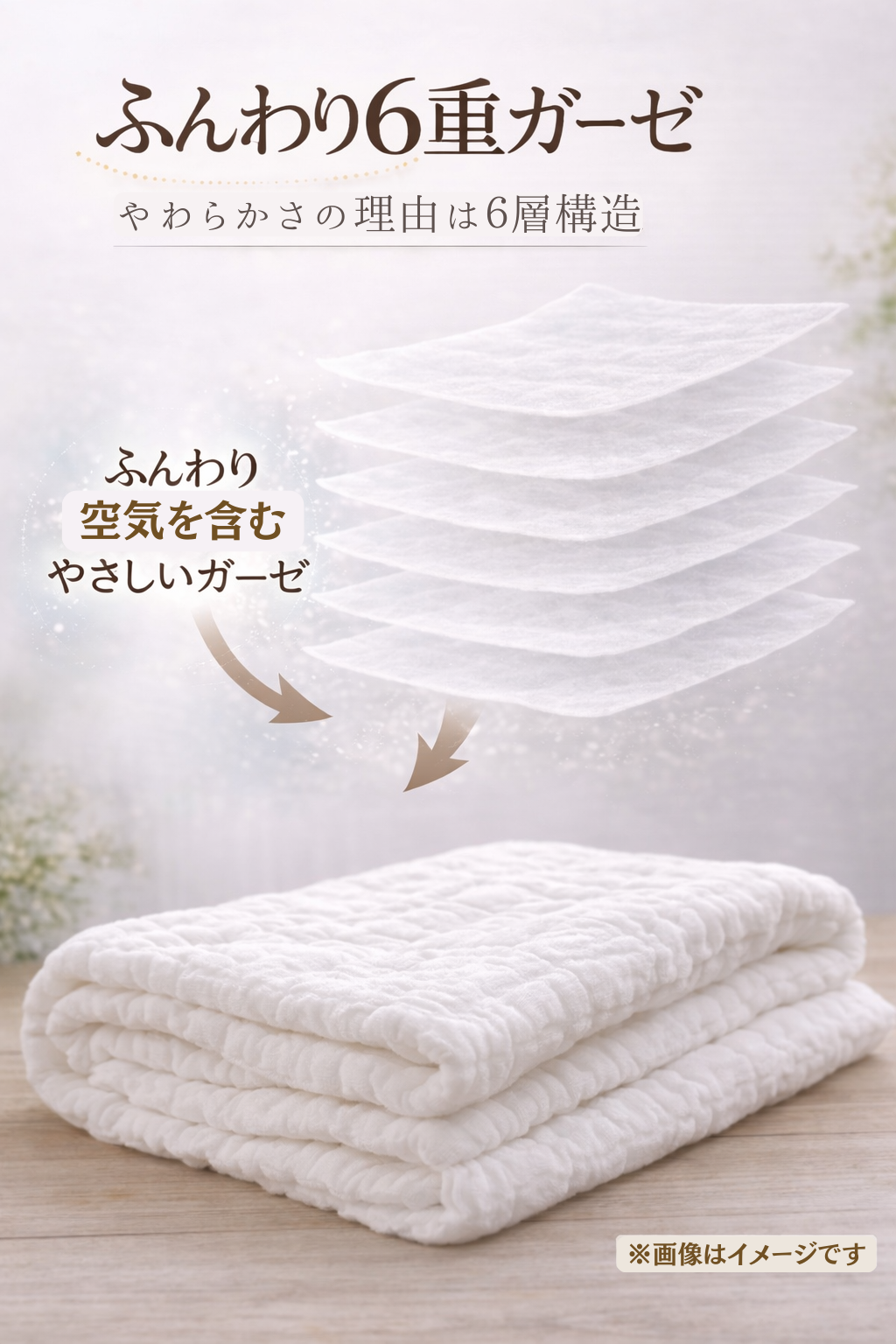 日常使いのガーゼとして、安心してお使いいただける品質を大切にしています。